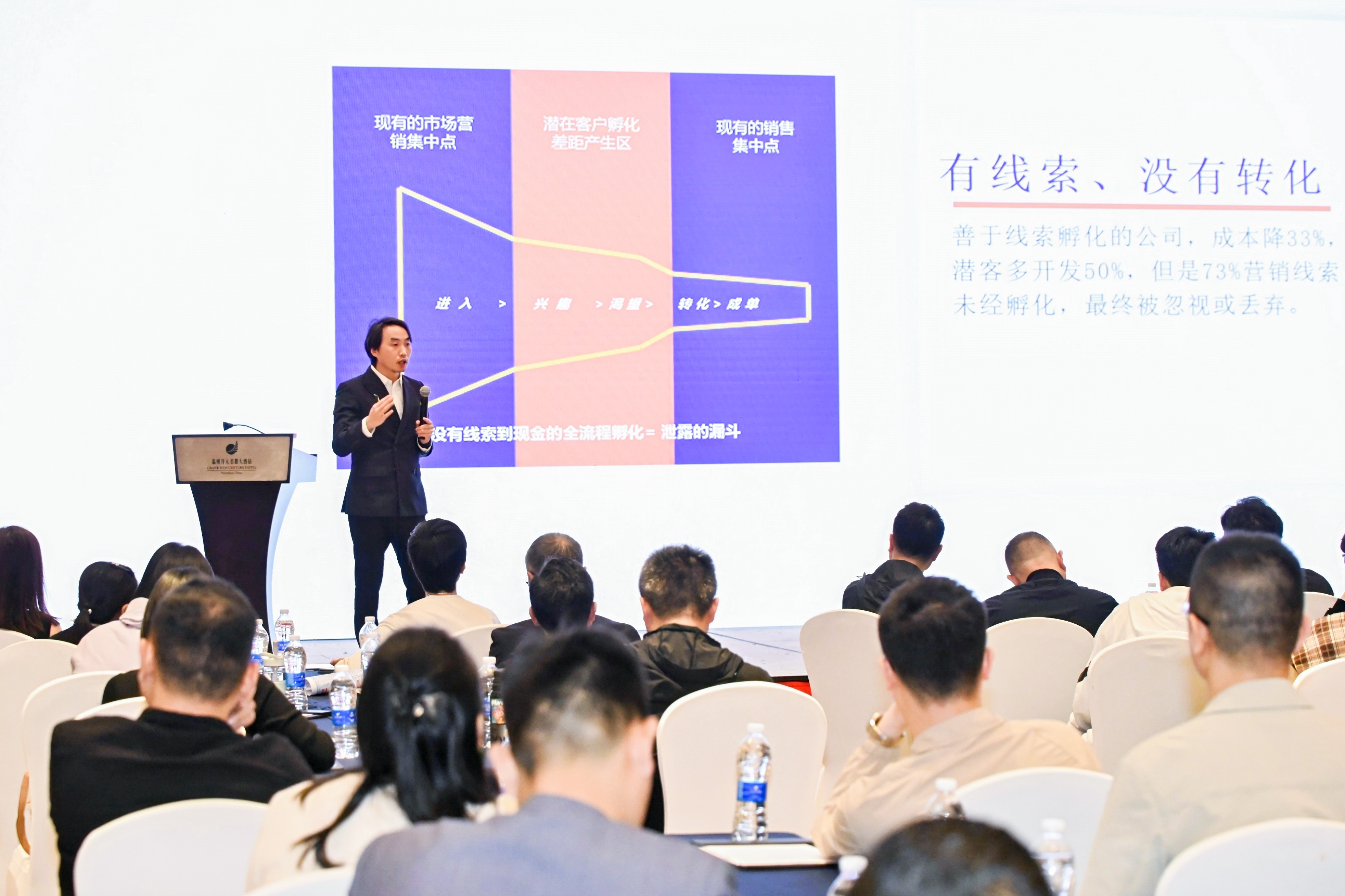 大會(huì)在熱烈的掌聲中拉開帷幕,作為開場(chǎng)嘉賓,商業(yè)博主水哥以其敏銳的市場(chǎng)洞察力,通過一系列生動(dòng)的案例,詳細(xì)解析了從市場(chǎng)洞察、客戶獲取、銷售轉(zhuǎn)化到客戶服務(wù)的全鏈條營(yíng)銷流程,展示了如何通過構(gòu)建高效的營(yíng)銷漏斗,實(shí)現(xiàn)從線索到現(xiàn)金的無縫對(duì)接。